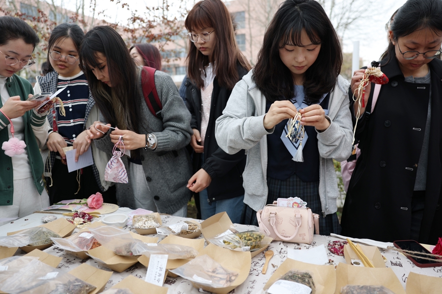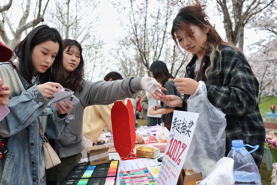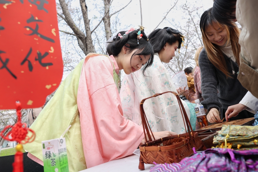 4月1日,华东师范大学闵行校区大夏路侧的樱花步说念化身“春日民风长卷”,“春樱漫序 拾趣韶光”春日民风游园会在此举行,23个学生社团、近千名学生参与其中。
