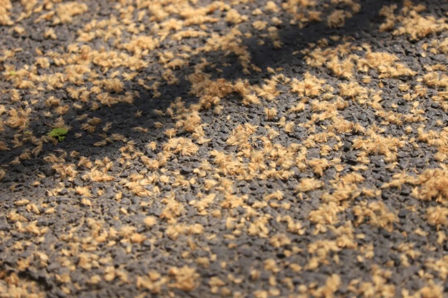 悬铃木果实是由多数的小坚果汇集成球形的聚花果,最专业股票配资小坚果基部围有长绒毛,俗称为果毛。每年3-4月悬铃木新叶助长,往年锻真金不怕火的果球开裂、零星,多数果毛从树上飘落,变成“毛毛雨”,是植物平时的生理征象。