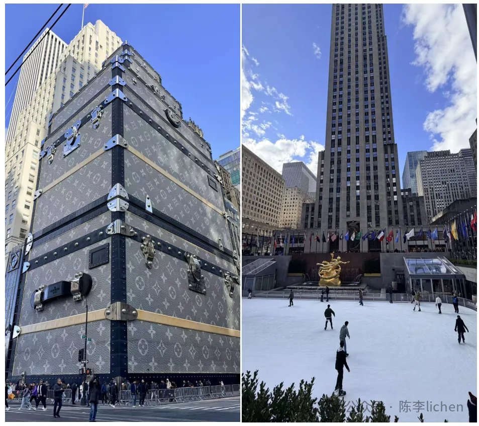 站在第五大路中央拍照LV箱子,及洛克菲勒中心的滑冰场如故绵绵络续▼