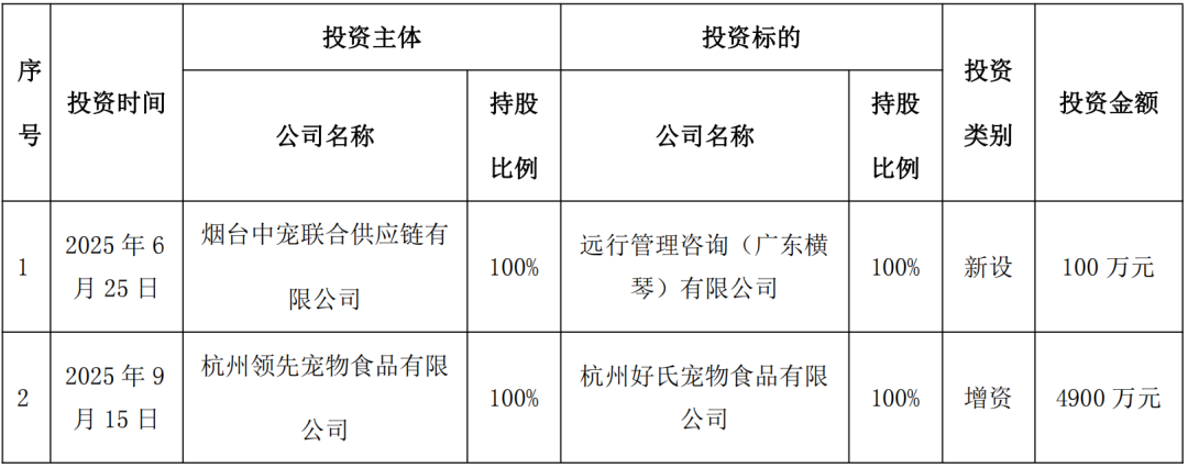 本次增资后,公司集中十二个月对外投资累计金额已卓越最近一期经审计净钞票的10%。近一年来,中宠股份在产业链整合方面行动每每,包括: