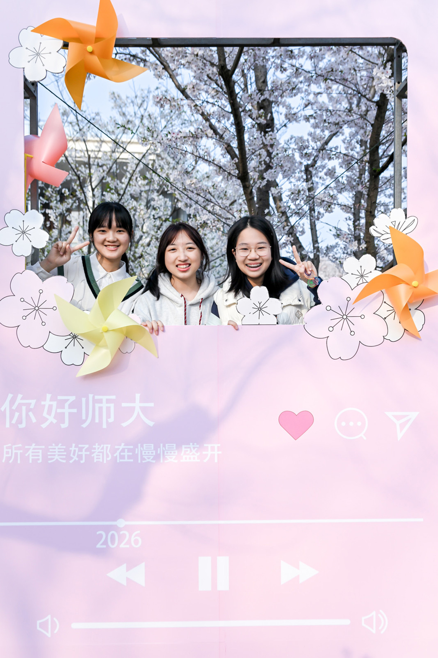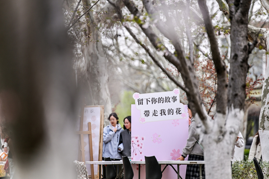 粉白的樱花在头顶交汇成云,微风吹过,花瓣纷纷洋洋落下,点缀在构兵东谈主群的肩头。华东师范大学闵行校区樱桃河畔的樱花步谈迎来一年中最吵杂的时间,这条绵延数公里、耕种着327株樱花的滨水步谈,在盛放的花期中被全心打酿成一幅可游、可感、可参与的“春日俗例长卷”——“春樱漫序 拾趣韶光”春日俗例游园会昨天举办,花树之间聚拢的23家学生社团引诱了近千名师生安身。