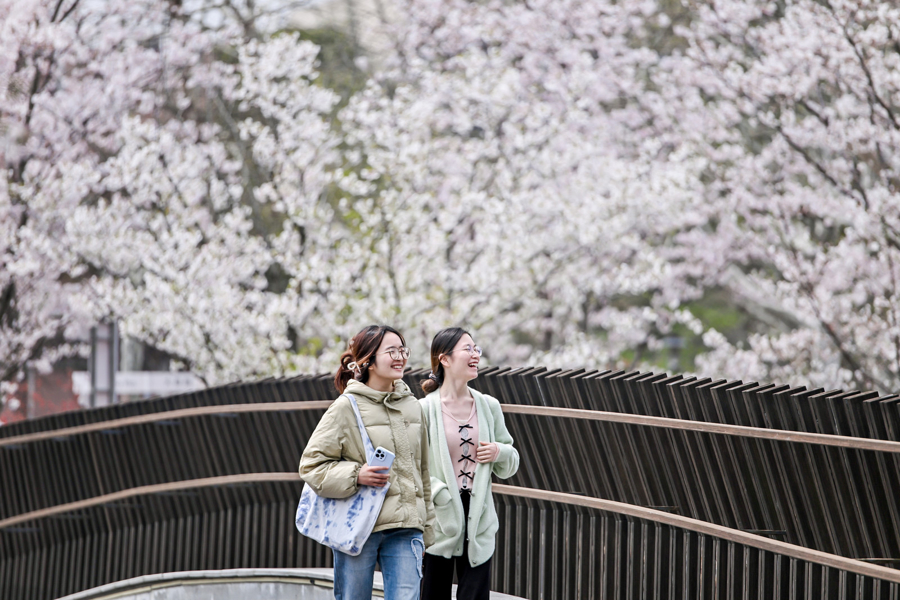 这条樱花步谈的出生,源自校园环境的握续晋升。自2019年下半年起,华东师范大学对闵行校区总长约3公里的樱桃河边岸以及沿河慢行步谈完成了矫正和升级,327棵樱花树已在此扎根。十年树木,百年树东谈主。当东谈主文景不雅与当然景不雅交汇,樱桃河边岸已成为师生疏通谈判、念书畅通的多功能校园活力环。当咱们惊喜于校园越来越好意思之时,校园也已“不言之教”滋润万物。
