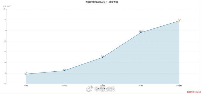 据Wind统计,2021年—2025年前三季度末,公司的研发用度永别为2.79亿元、3.75亿元、7.46亿元、14.43亿元、17.72亿元。不足5年时期仍是翻了6倍多。