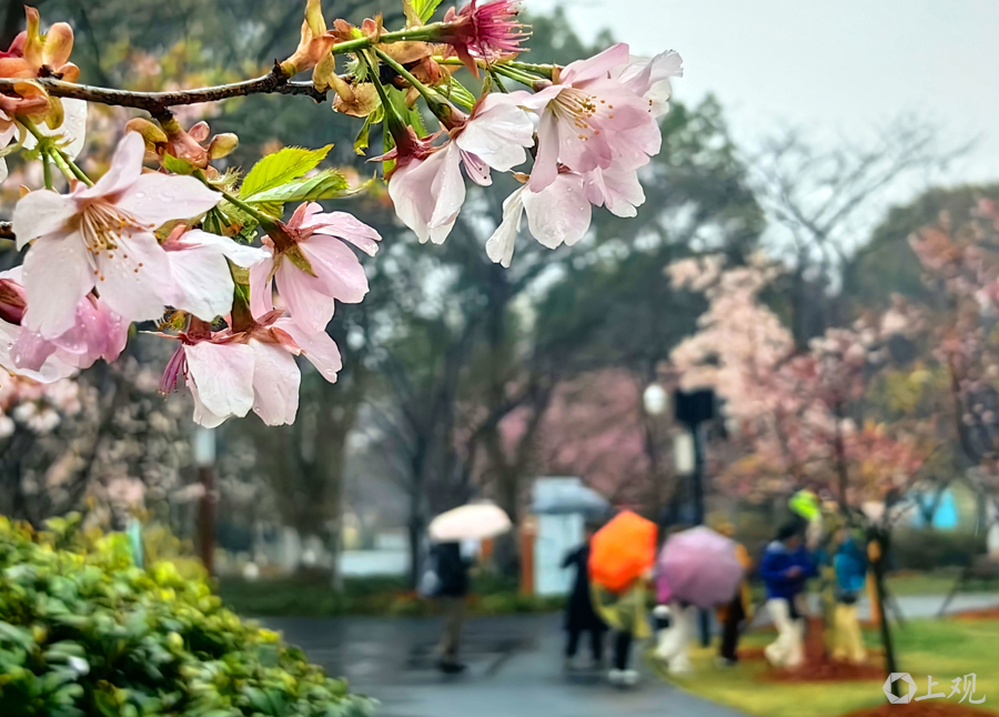 雨中赏樱,诗情画意 杨建正 摄
